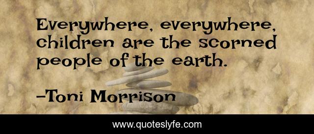 This page presents the quote "Everywhere, everywhere, children are the scorned people of the earth.". Author of this quote is Toni Morrison. This quote is about children, power,.