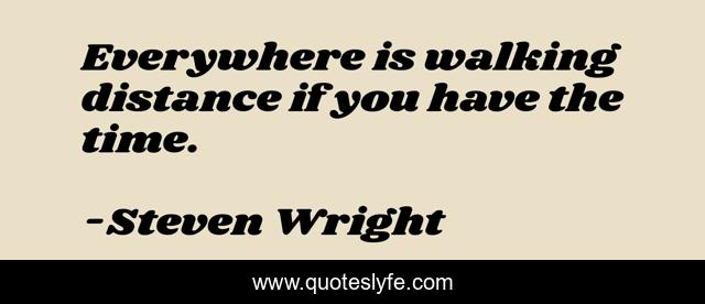 This page presents the quote "Everywhere is walking distance if you have the time.". Author of this quote is Steven Wright. This quote is about walking, humor, perspective,.