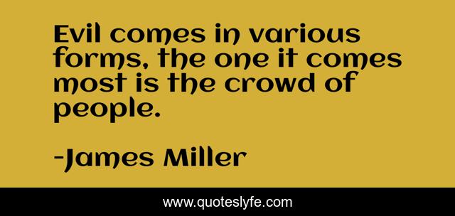 This page presents the quote "Evil comes in various forms, the one it comes most is the crowd of people.". Author of this quote is James Miller. This quote is about humanity, evil,.