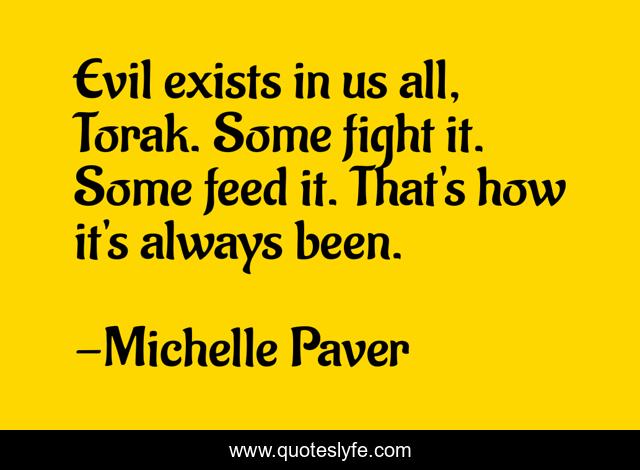 This page presents the quote "Evil exists in us all, Torak. Some fight it. Some feed it. That's how it's always been.". Author of this quote is Michelle Paver. This quote is about enthusiasm, inspirational,.