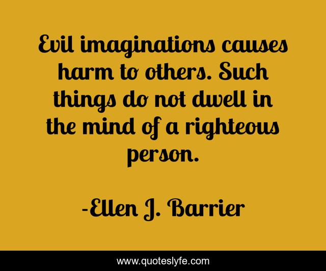 This page presents the quote "Evil imaginations causes harm to others. Such things do not dwell in the mind of a righteous person.". Author of this quote is Ellen J. Barrier. This quote is about imaginations, harm, mind, evil,.