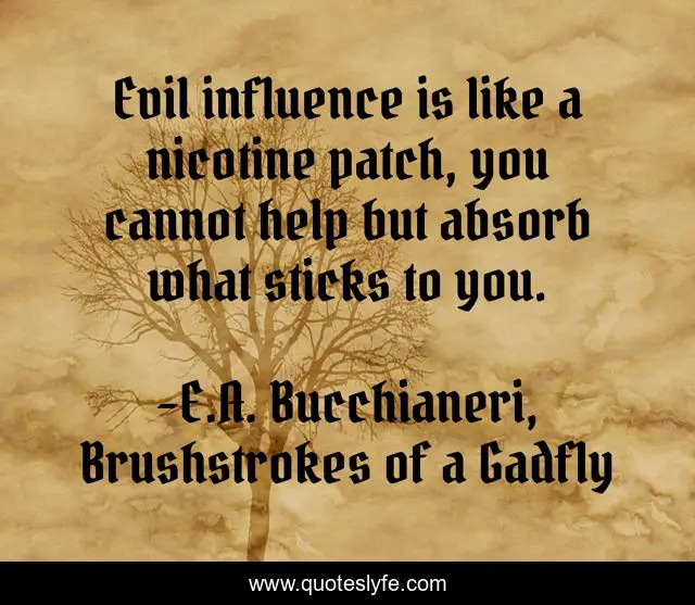 "E.A. Bucchianeri, Brushstrokes of a Gadfly Quotes." Quoteslyfe.com, 2025. Fri. 05 Dec. 2025. <https://www.quoteslyfe.com/quote/Evil-influence-is-like-a-nicotine-patch-41400>.