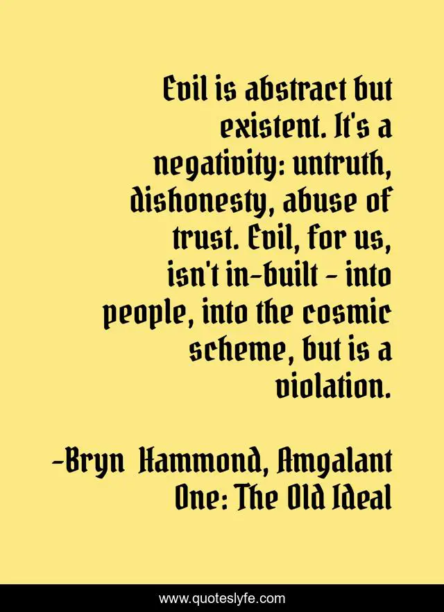 "Bryn Hammond, Amgalant One: The Old Ideal Quotes." Quoteslyfe.com, 2025. Fri. 05 Dec. 2025. <https://www.quoteslyfe.com/quote/Evil-is-abstract-but-existent-It-s-119544>.