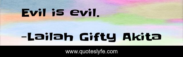 This page presents the quote "Evil is evil.". Author of this quote is Lailah Gifty Akita. This quote is about inspiring, wise-words, evil,.