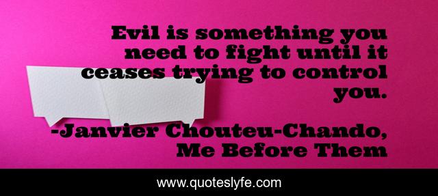 This page presents the quote "Evil is something you need to fight until it ceases trying to control you.". Author of this quote is Janvier Chouteu-Chando, Me Before Them. This quote is about spirituality, success, truth, wisdom,.