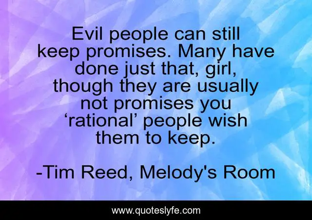"Tim Reed, Melody's Room Quotes." Quoteslyfe.com, 2025. Fri. 05 Dec. 2025. <https://www.quoteslyfe.com/quote/Evil-people-can-still-keep-promises-Many-242758>.