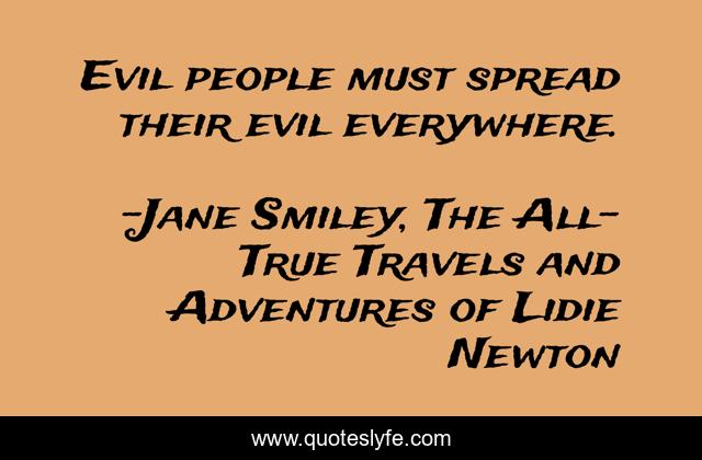 This page presents the quote "Evil people must spread their evil everywhere.". Author of this quote is Jane Smiley, The All-True Travels and Adventures of Lidie Newton. This quote is about evil-thoughts, evil-people, evil,.