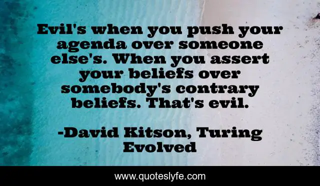 "David Kitson, Turing Evolved Quotes." Quoteslyfe.com, 2025. Mon. 08 Dec. 2025. <https://www.quoteslyfe.com/quote/Evil-s-when-you-push-your-agenda-154542>.
