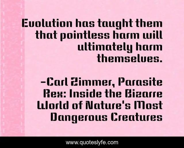 "Carl Zimmer, Parasite Rex: Inside the Bizarre World of Nature's Most Dangerous Creatures Quotes." Quoteslyfe.com, 2025. Fri. 05 Dec. 2025. <https://www.quoteslyfe.com/quote/Evolution-has-taught-them-that-pointless-harm-178314>.