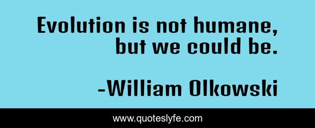 This page presents the quote "Evolution is not humane, but we could be.". Author of this quote is William Olkowski. This quote is about evolution, evolutionary-process, humaness,.