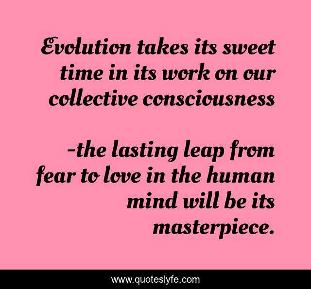 "the lasting leap from fear to love in the human mind will be its masterpiece. Quotes." Quoteslyfe.com, 2025. Sat. 06 Dec. 2025. <https://www.quoteslyfe.com/quote/Evolution-takes-its-sweet-time-in-its-71222>.