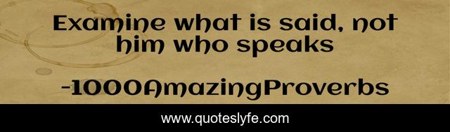 This page presents the quote "Examine what is said, not him who speaks". Author of this quote is 1000AmazingProverbs. .