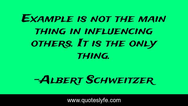 This page presents the quote "Example is not the main thing in influencing others. It is the only thing.". Author of this quote is Albert Schweitzer. This quote is about character, leadership, influence,.