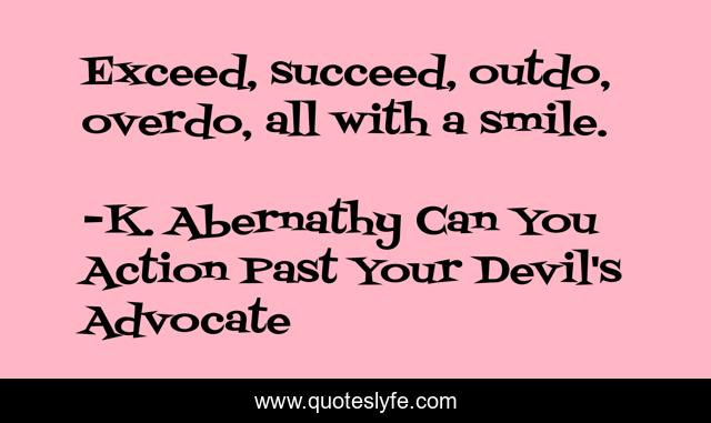 "K. Abernathy Can You Action Past Your Devil's Advocate Quotes." Quoteslyfe.com, 2025. Fri. 05 Dec. 2025. <https://www.quoteslyfe.com/quote/Exceed-succeed-outdo-overdo-all-with-a-88833>.