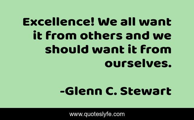 This page presents the quote "Excellence! We all want it from others and we should want it from ourselves.". Author of this quote is Glenn C. Stewart. This quote is about excellence, be-excellent, encouragement,.