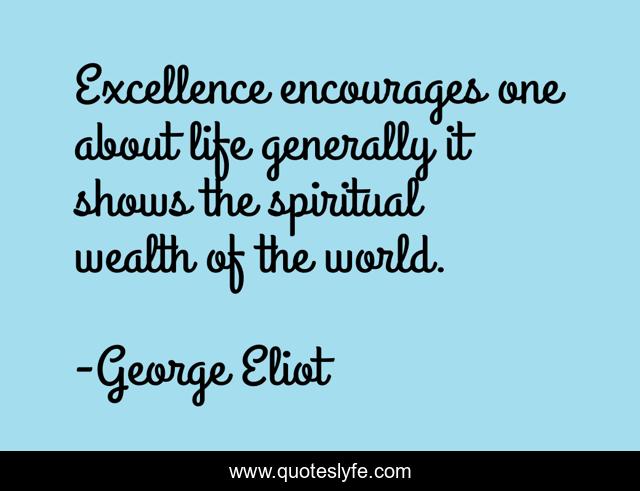 This page presents the quote "Excellence encourages one about life generally it shows the spiritual wealth of the world.". Author of this quote is George Eliot. .
