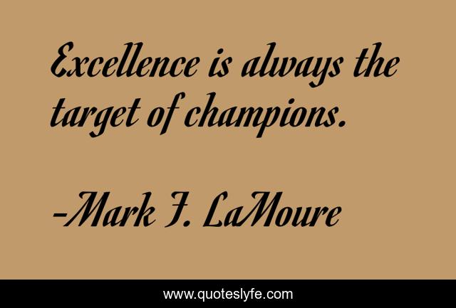This page presents the quote "Excellence is always the target of champions.". Author of this quote is Mark F. LaMoure. This quote is about self-confidence, uplifting, success, excellent-people, excellence, self-improvement, inspirational, self-help, determination,.