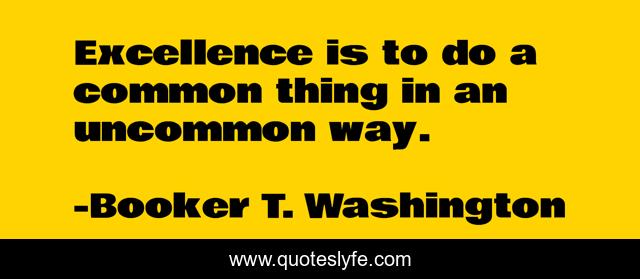 This page presents the quote "Excellence is to do a common thing in an uncommon way.". Author of this quote is Booker T. Washington. .