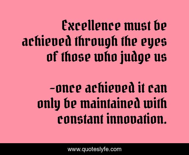 This page presents the quote "Excellence must be achieved through the eyes of those who judge us". Author of this quote is once achieved it can only be maintained with constant innovation.. .