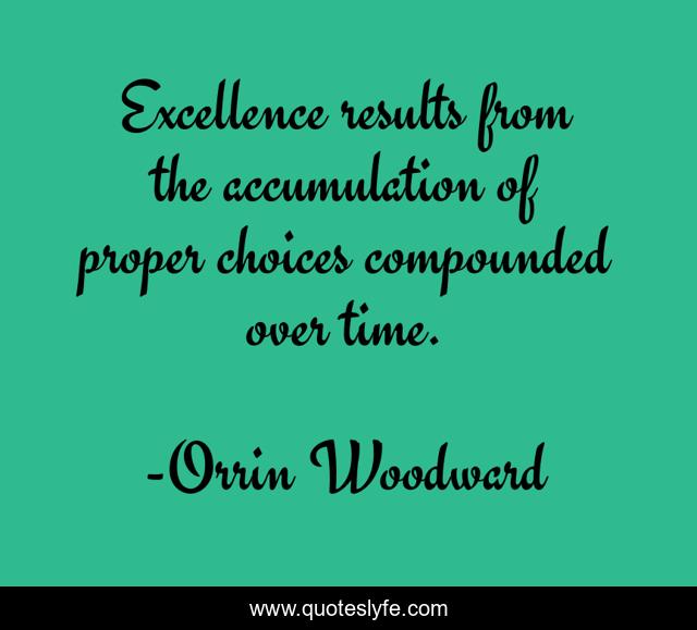 This page presents the quote "Excellence results from the accumulation of proper choices compounded over time.". Author of this quote is Orrin Woodward. This quote is about excellence, achievement, success,.