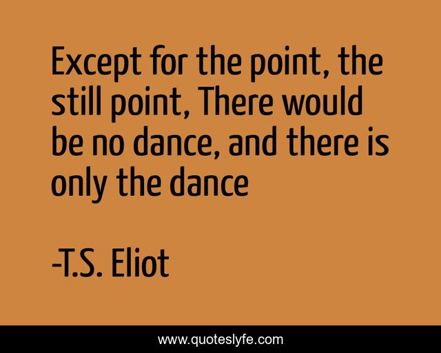 This page presents the quote "Except for the point, the still point, There would be no dance, and there is only the dance". Author of this quote is T.S. Eliot. .