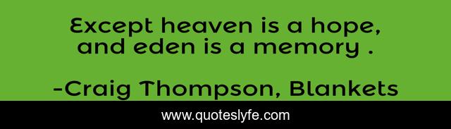 This page presents the quote "Except heaven is a hope, and eden is a memory .". Author of this quote is Craig Thompson, Blankets. This quote is about heaven, eden, hope, memory,.