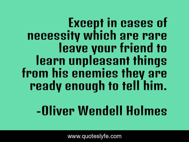 This page presents the quote "Except in cases of necessity which are rare leave your friend to learn unpleasant things from his enemies they are ready enough to tell him.". Author of this quote is Oliver Wendell Holmes. .