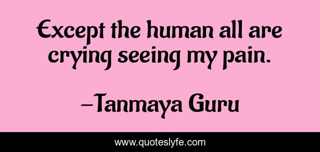 This page presents the quote "Except the human all are crying seeing my pain.". Author of this quote is Tanmaya Guru. .