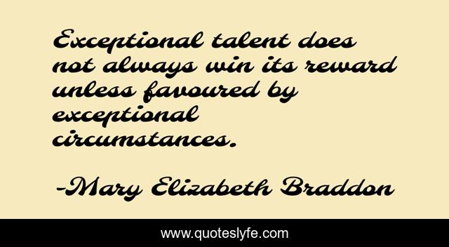 This page presents the quote "Exceptional talent does not always win its reward unless favoured by exceptional circumstances.". Author of this quote is Mary Elizabeth Braddon. .