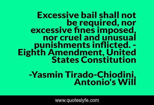 "Yasmin Tirado-Chiodini, Antonio's Will Quotes." Quoteslyfe.com, 2025. Sat. 06 Dec. 2025. <https://www.quoteslyfe.com/quote/Excessive-bail-shall-not-be-required-nor-199776>.