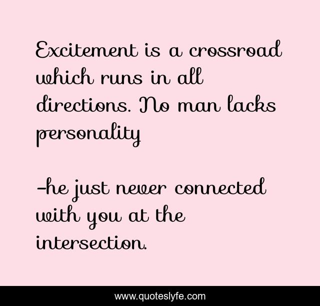 This page presents the quote "Excitement is a crossroad which runs in all directions. No man lacks personality". Author of this quote is he just never connected with you at the intersection.. This quote is about criss jami, killosophy,.