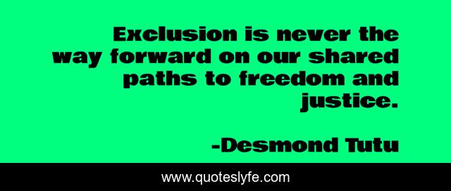 This page presents the quote "Exclusion is never the way forward on our shared paths to freedom and justice.". Author of this quote is Desmond Tutu. This quote is about justice, paths, forward,.