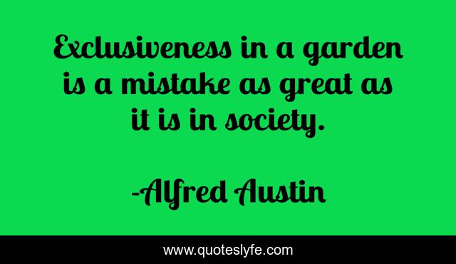 This page presents the quote "Exclusiveness in a garden is a mistake as great as it is in society.". Author of this quote is Alfred Austin. This quote is about great, garden, mistake,.