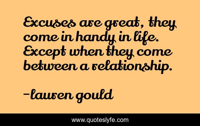 This page presents the quote "Excuses are great, they come in handy in life. Except when they come between a relationship.". Author of this quote is lauren gould. .