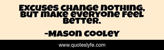 This page presents the quote "Excuses change nothing, but make everyone feel better.". Author of this quote is Mason Cooley. This quote is about better, excuses, nothing,.