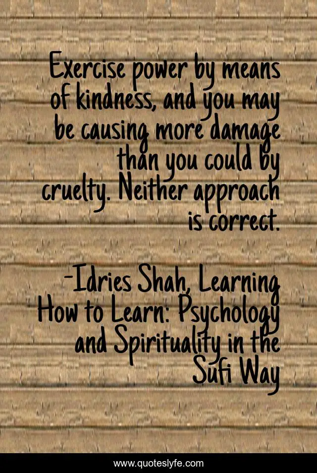 "Idries Shah, Learning How to Learn: Psychology and Spirituality in the Sufi Way Quotes." Quoteslyfe.com, 2025. Fri. 05 Dec. 2025. <https://www.quoteslyfe.com/quote/Exercise-power-by-means-of-kindness-and-178295>.