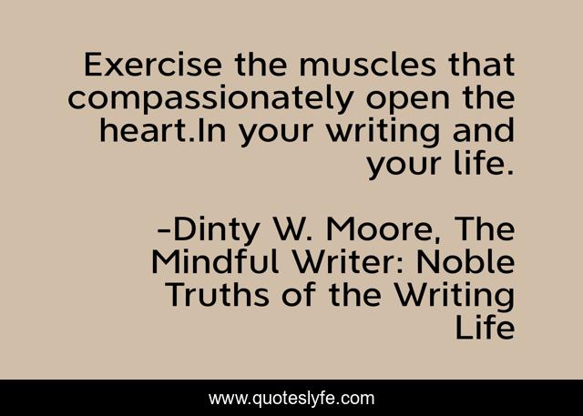 "Dinty W. Moore, The Mindful Writer: Noble Truths of the Writing Life Quotes." Quoteslyfe.com, 2025. Fri. 05 Dec. 2025. <https://www.quoteslyfe.com/quote/Exercise-the-muscles-that-compassionately-open-the-135342>.