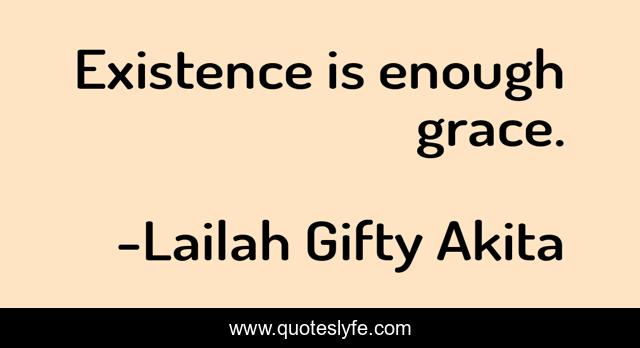 This page presents the quote "Existence is enough grace.". Author of this quote is Lailah Gifty Akita. This quote is about existence, life, wise-words, grace,.