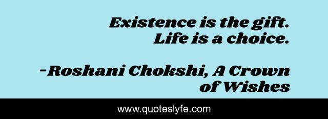 This page presents the quote "Existence is the gift. Life is a choice.". Author of this quote is Roshani Chokshi, A Crown of Wishes. .