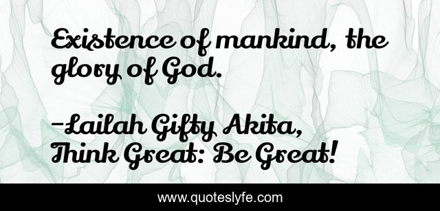 "Lailah Gifty Akita, Think Great: Be Great! Quotes." Quoteslyfe.com, 2025. Mon. 08 Dec. 2025. <https://www.quoteslyfe.com/quote/Existence-of-mankind-the-glory-of-God-201106>.