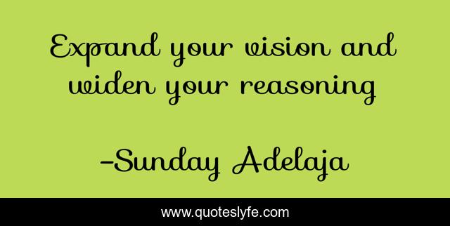 This page presents the quote "Expand your vision and widen your reasoning". Author of this quote is Sunday Adelaja. This quote is about life, blessing, finance, thinking, money, work, wider-vision, job, purpose,.