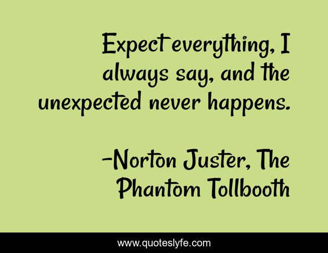 This page presents the quote "Expect everything, I always say, and the unexpected never happens.". Author of this quote is Norton Juster, The Phantom Tollbooth. .
