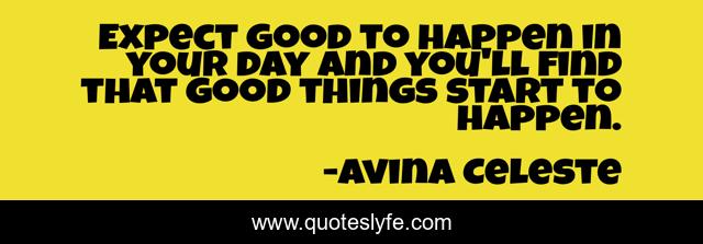 This page presents the quote "Expect good to happen in your day and you'll find that good things start to happen.". Author of this quote is Avina Celeste. This quote is about confidence, good, positive, motivational, expectation, optimistic, inspirational, enthusiasm,.