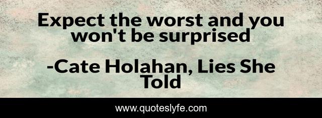 This page presents the quote "Expect the worst and you won't be surprised". Author of this quote is Cate Holahan, Lies She Told. .