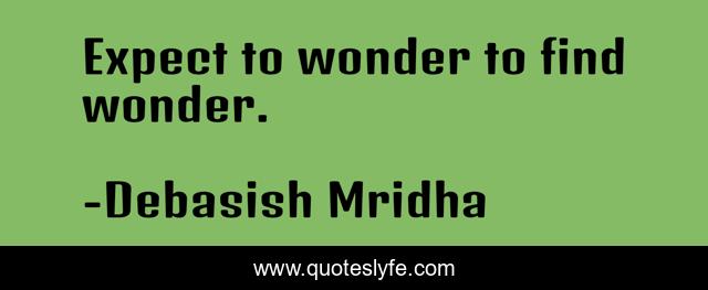 This page presents the quote "Expect to wonder to find wonder.". Author of this quote is Debasish Mridha. This quote is about expect-wonder, philosophy, debasish-mridha, expectations, quotes, inspirational, enthusiasm, debasish-mridha-m-d, wonder,.