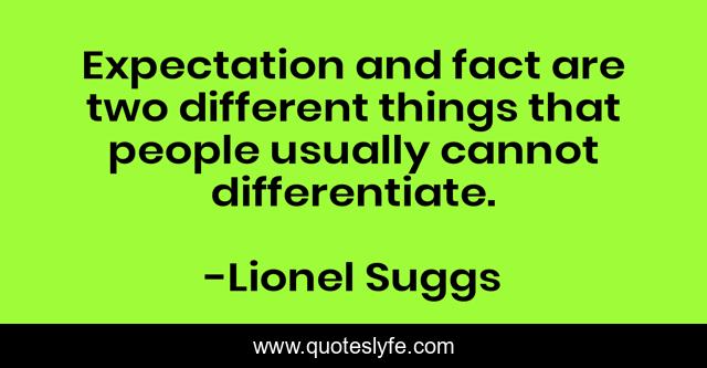 This page presents the quote "Expectation and fact are two different things that people usually cannot differentiate.". Author of this quote is Lionel Suggs. This quote is about facts, opinions, expectations,.