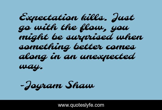 This page presents the quote "Expectation kills. Just go with the flow, you might be surprised when something better comes along in an unexpected way.". Author of this quote is Joyram Shaw. This quote is about life, travel, live-and-learn, expectations, journey, life-lessons, journey-of-life, live-in-the-moment,.