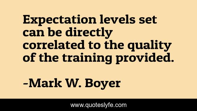 This page presents the quote "Expectation levels set can be directly correlated to the quality of the training provided.". Author of this quote is Mark W. Boyer. This quote is about inspirational, management-and-leadership, mark-boyer, learning, enthusiasm, training-management, boyer,.