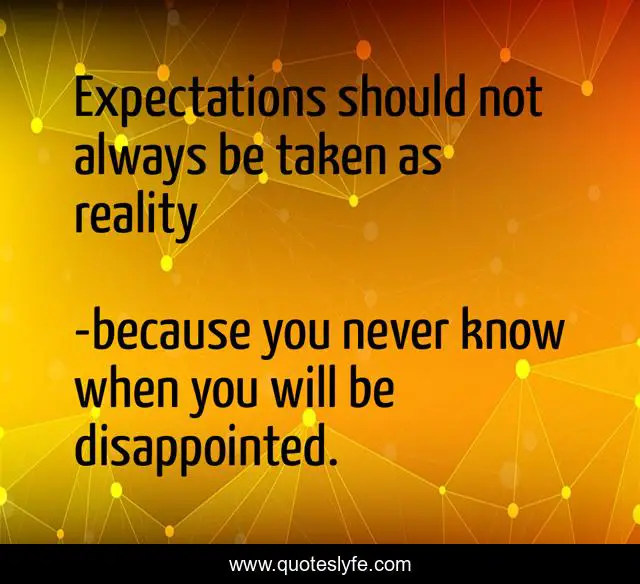 "because you never know when you will be disappointed. Quotes." Quoteslyfe.com, 2025. Sat. 06 Dec. 2025. <https://www.quoteslyfe.com/quote/Expectations-should-not-always-be-taken-as-228319>.
