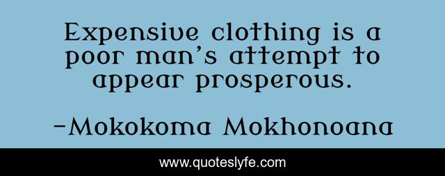 "Mokokoma Mokhonoana Quotes." Quoteslyfe.com, 2025. Fri. 05 Dec. 2025. <https://www.quoteslyfe.com/quote/Expensive-clothing-is-a-poor-man-s-245653>.